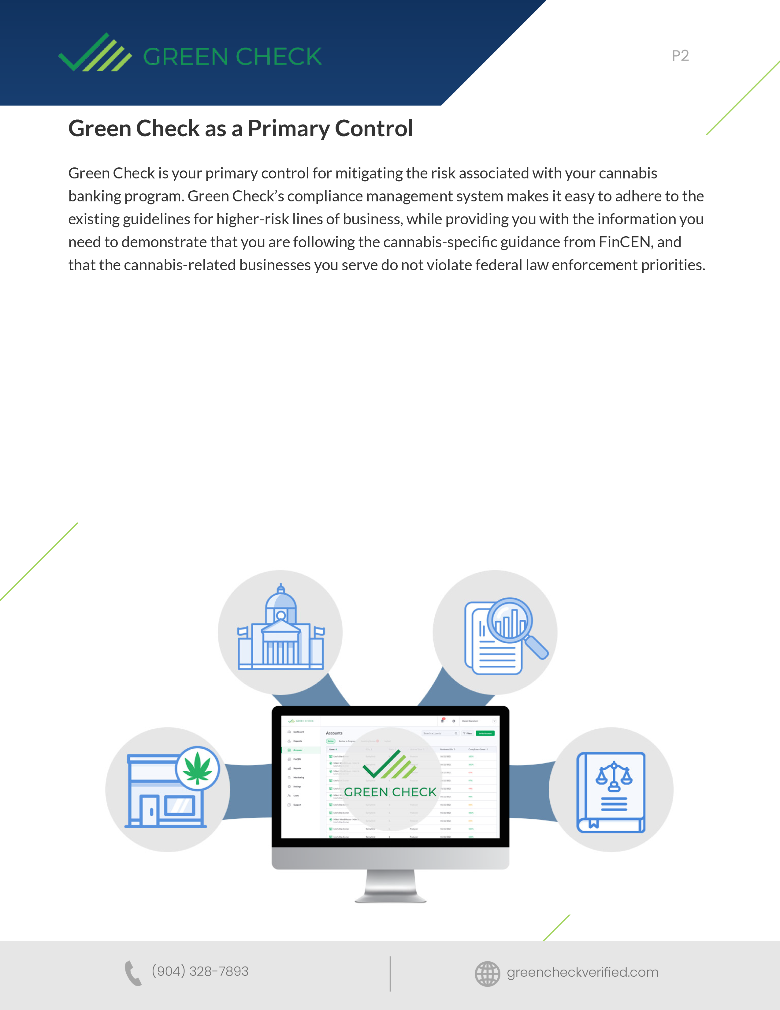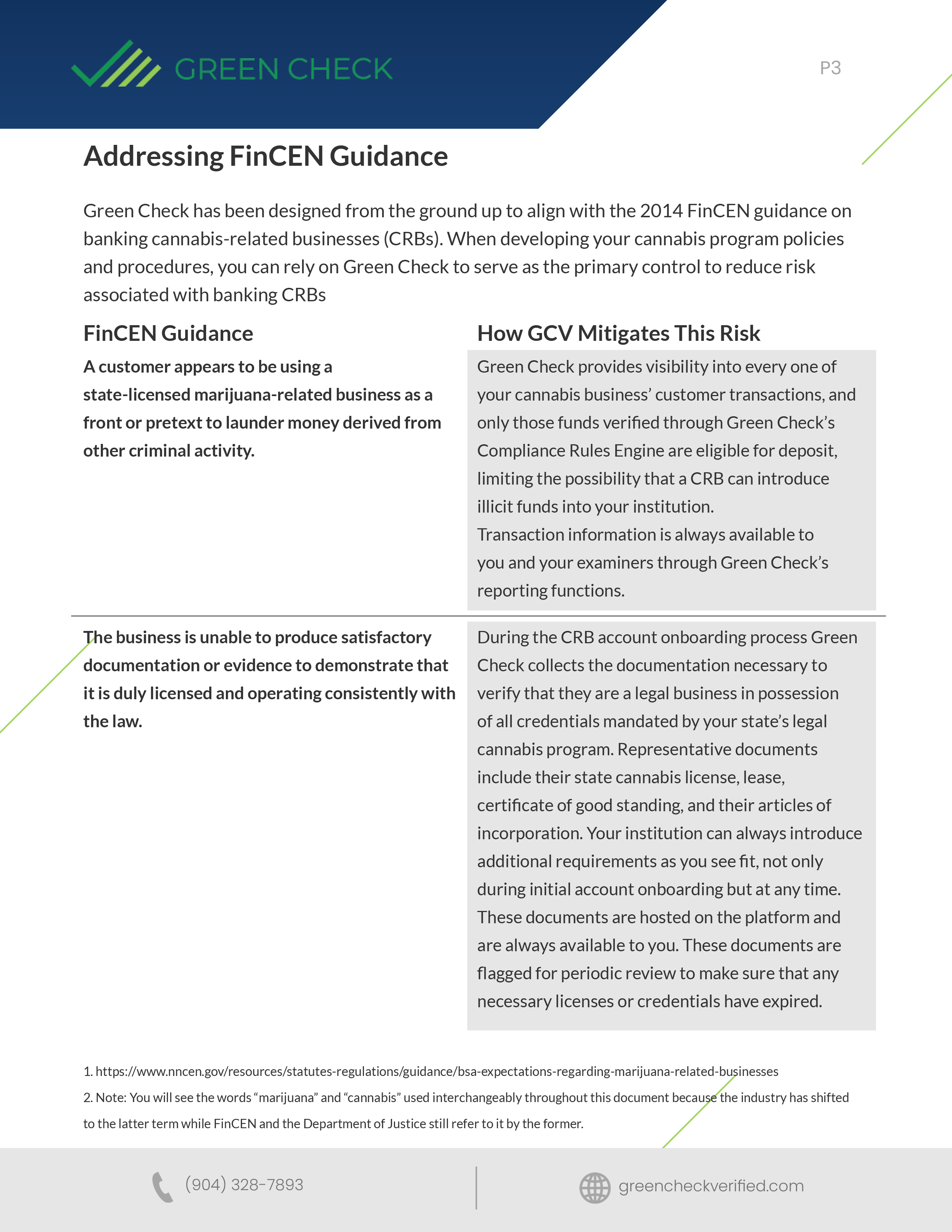 Green Check’s compliance management system makes it easy to adhere to the existing guidelines for higher-risk lines of business, while providing you with the information you need to demonstrate that you are following the cannabis-specific guidance from FinCEN.