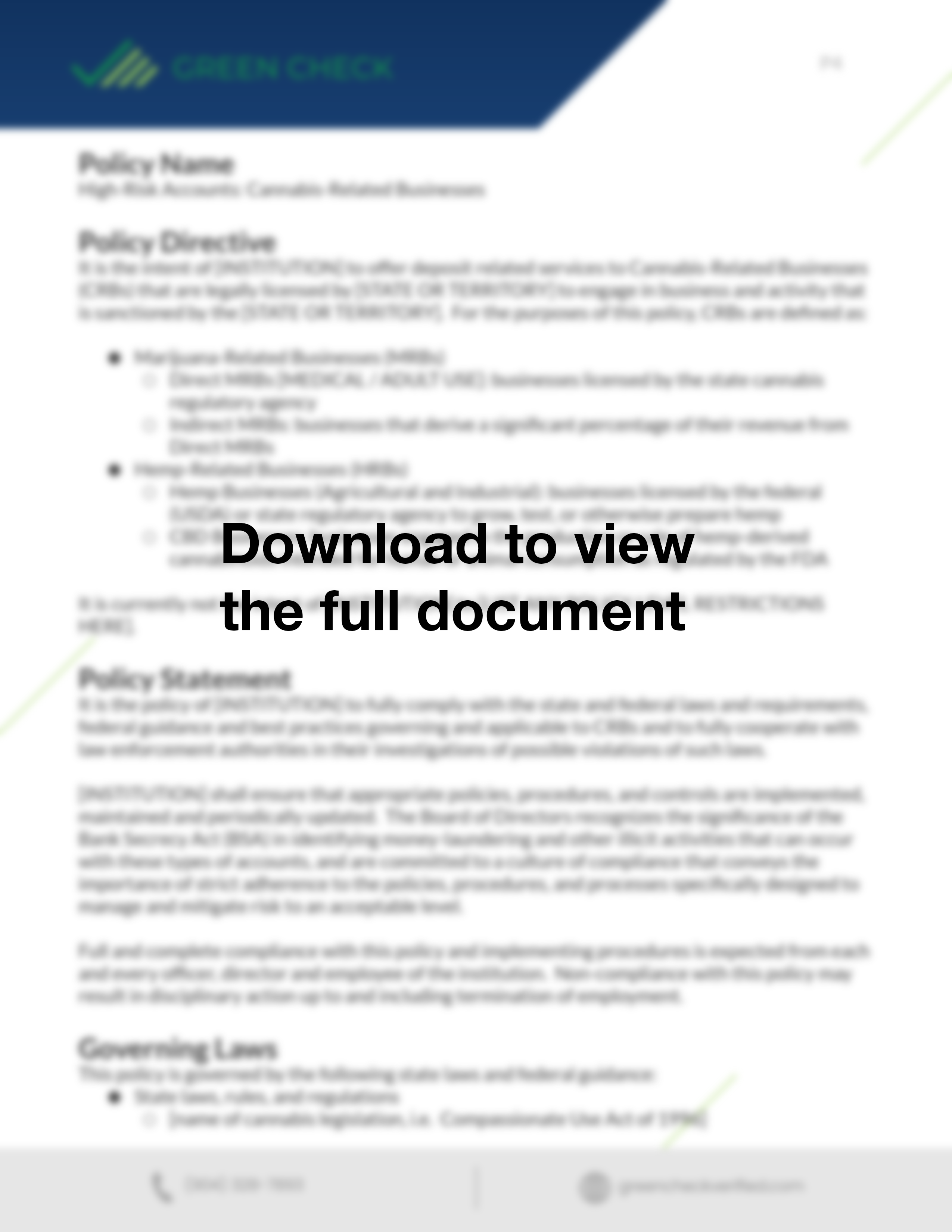 Sample Cannabis Banking Policy